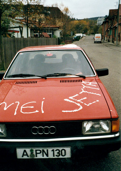 ![]() JettaEin Audi spielt den Jetta.Eugen ist überzeugter Jetta-Fahrer, wie schon sein Vater, sein Opa, sein Uropa, sein Ururopa... Mit seinem Audi erregt er große Aufruhr im Jetta-Club Augsburg. |